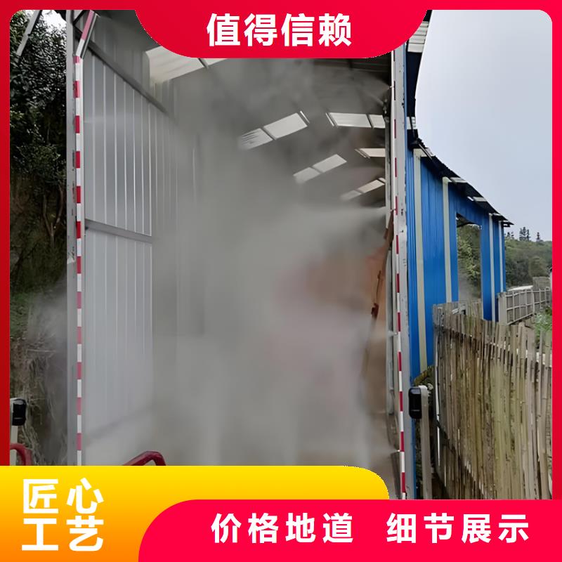 设备采用高压喷雾原理。根据事先安装好的造雾管道和喷头,对进出场的车辆进行360度的消毒,确保防疫工作的严格性。